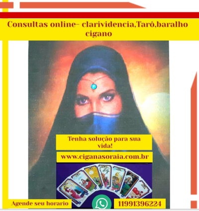 Tenha direcionamento para sua vida! Agende uma consulta online com a Tarologa e vidente Soraia ela lhe dará o caminho certo a seguir,realiza magias para abrir caminho no trabalho, amor,negócios,empresa,banhos de limpeza energetica ,alinhamento de energias,atende todo Brasil e Exterior, site:www.ciganasoraia.com.br